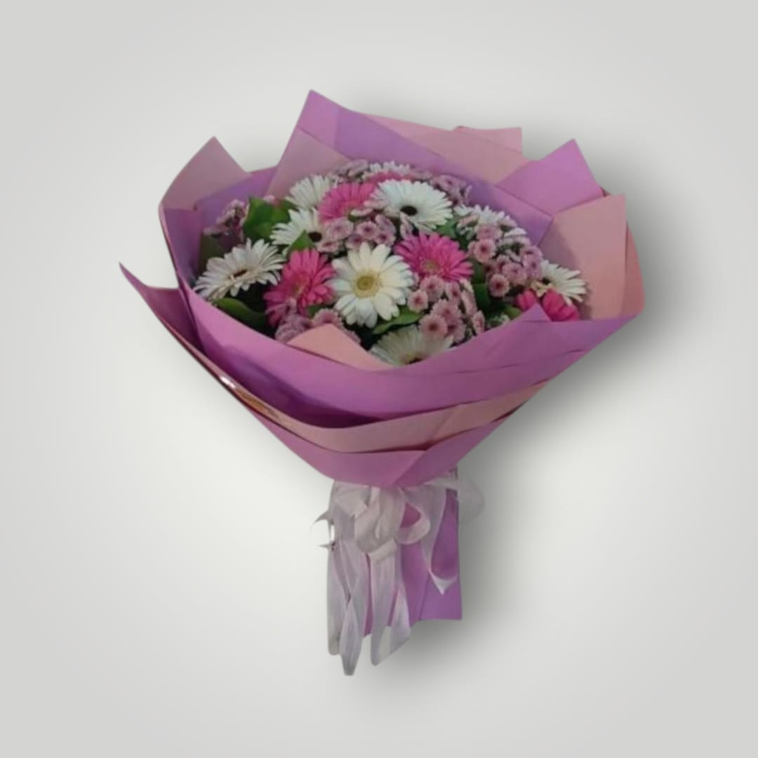Hayatın en güzel anlarına yakışan, içten bir tebessüm gibi duran Gülümseyen Renkler, pembe ve beyazın neşeli buluşmasıyla hazırlanmıştır. Gerberaların sıcak enerjisi ve krizantemlerin zarafetiyle hazırlanan bu buket, doğum gününden “Geçmiş olsun” dileklerine kadar birçok özel an için ideal bir seçimdir. Lavanta tonlarındaki ambalajı ve yumuşak kurdelesiyle sade ama etkileyici bir sürpriz sunar.